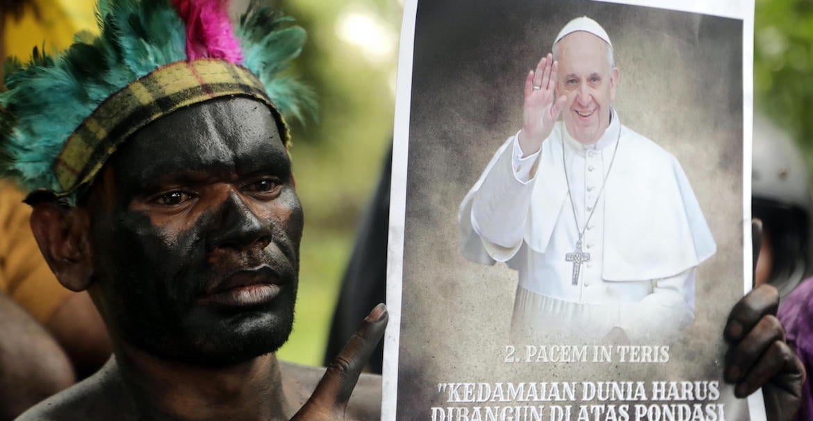“Bienvenido Santo Padre a nuestra amada tierra con motivo de su misión apostólica”, se lee en otro cartel, sostenido por uno de las decenas de manifestantes de las provincias indonesias de Papúa organizaron una manifestación en la que han instado al Papa Francisco a centrarse en las cuestiones de paz y justicia en el lado indonesio de la isla de Papúa. Asimismo, pidieron al Papa que aborde la violencia actual en Papúa, que, según afirman, está siendo llevada a cabo por el ejército indonesio.