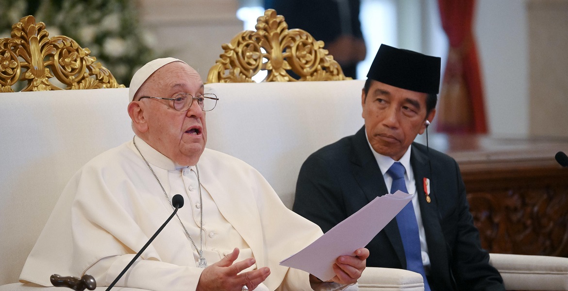 Acto seguido el Papa y el presidente todavía en funciones ( ya ha sido elegido Prabowo Subianto que le sucederá el próximo 20 de octubre), Joko Widodo, mantuvieron un breve encuentro privado. Finalizado, se dirigieron al Palacio Negara donde tuvo lugar la audiencia con las autoridades políticas y militares, representantes de la sociedad civil y de la cultura y el Cuerpo Diplomático. Unas trescientas personas en total.