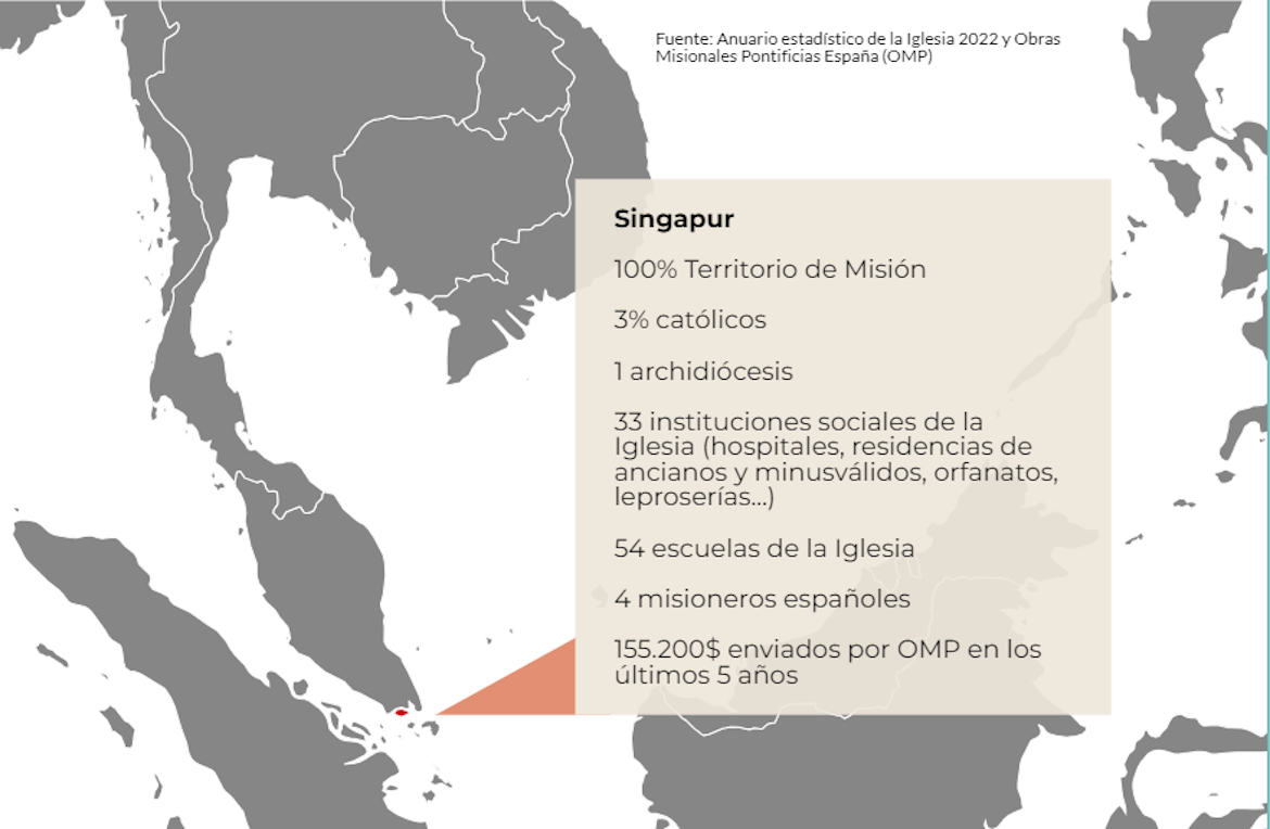 El papa Francisco ha llegado hoy a Singapur, última etapa de su viaje a cuatro países 100% territorios de misión. Con una superficie un poco menor a la isla de Menorca, la Iglesia está presente allí desde hace 200 años en minoría.