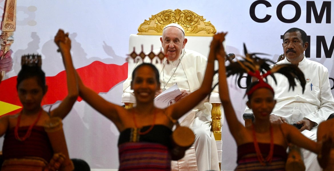 “No me voy a olvidar más de la sonrisa de ustedes. Gracias por su sonrisa y su alegría”. Con estas palabras, el papa Francisco se despedía de los jóvenes timorenses y, por tanto, de todo el país, en el que fue su último acto en el país con mayor porcentaje de católicos del planeta. El centro de convenciones de la capital, Dili, fue el lugar elegido para un diálogo abierto entre el pontífice argentino y cerca de un millar de jóvenes que estaban en el interior, mientras se calcula que otros 2.000 le escucharon fuera. Tras esta cita, puso rumbo al aeropuerto para tomar el avión que le lleva al último destino del viaje más largo de su pontificado: Singapur.