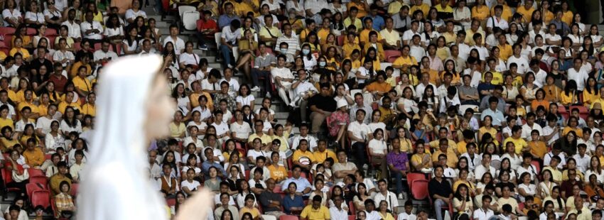 Para la eucaristía que ha puesto punto final y solemne al breve pero muy intensa estancia del papa Francisco en Singapur se ha escogido el Estadio Nacional una estructura tecnológicamente a la vanguardia en lo que a instalaciones deportivas se refiere. Las cincuenta mil personas que han participado en ella habían sido acomodadas en sus gradas y en el amplio terreno de juego protegidas por una cúpula gigante y refrigerada, a pesar de lo cual el calor era bastante intenso.