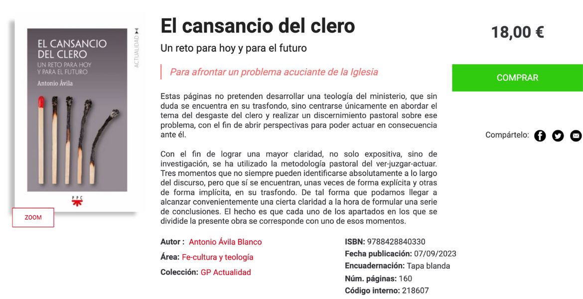 Por supuesto que los curas también se cansan. Es así como Antonio Ávila Blanco en su libro ‘El cansancio del clero: Un reto para hoy y para el futuro’, ofrece pistas para “afrontar un problema acuciante de la Iglesia”.