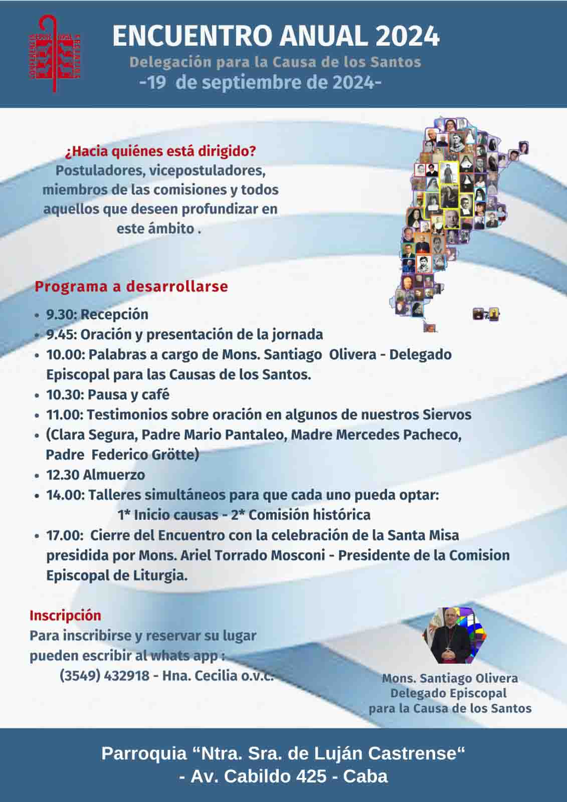 Este jueves se realizará en la parroquia Nuestra Señora de Luján Castrense, del barrio porteño de Belgrano, el tradicional Encuentro Nacional de Causas de los Santos, organizado por la Delegación Episcopal que encabeza el obispo castrense, Santiago Olivera.