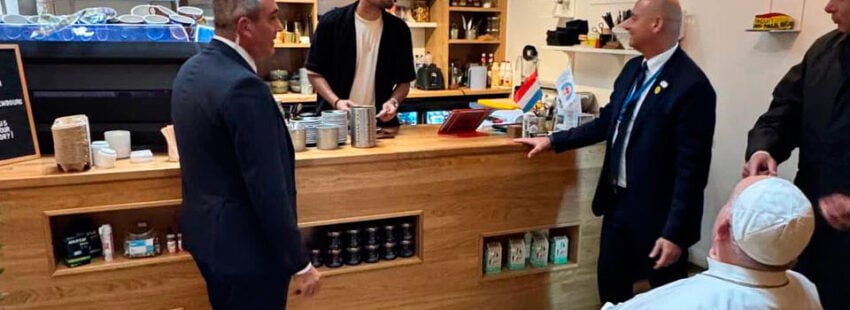 Según ha informado el Vaticano, después de comer, Jorge Mario Bergoglio y alguno de sus colaboradores fueron a una cafetería cercana a tomarse un café, cómo se observa en la imagen que acompaña esta noticia y que han proporcionado a los medios.