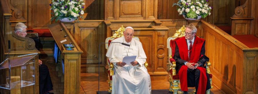 Aún quisiera dedicar unas palabras a la ceremonia que tuvo lugar por la tarde en la Universidad flamenca de Lovaina. Su rector Luc Sels se lanzó a pronunciar un discurso muy amplio en el que, además abordar con profundidad el problema de los refugiados al que su universidad dedica muchos esfuerzos, quiso referirse también al lugar que la Iglesia debe reservar a las personas LGBTQ+. Y no solo eso, también incluyó esta pregunta: “¿La Iglesia no sería más cordial si diera a las mujeres un puesto de relieve incluido el sacerdocio?”. El Papa escuchó al Rector sin pestañear y al discurso que le habían preparado sus colaboradores no le añadió ni una sola palabra improvisada. Un diálogo de sordos. Y cabe preguntarse: ¿no había habido, como es habitual un previo intercambio de discursos para evitar esa juxtaposición sin diálogo?
