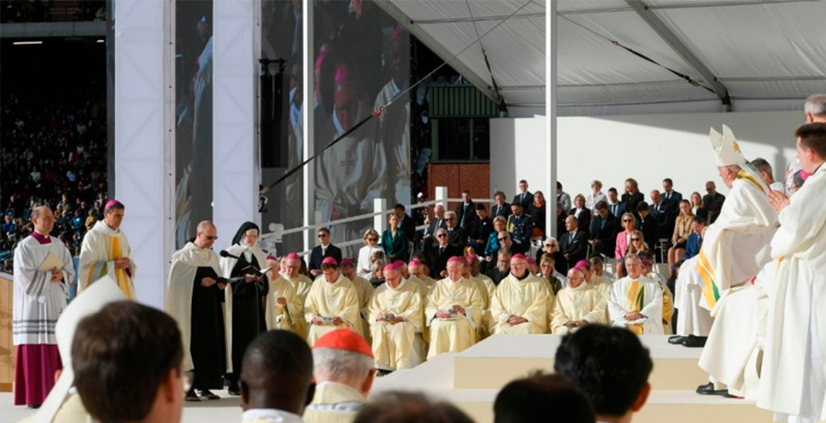 El papa Francisco ha cerrado prácticamente su visita apostólica a Bélgica con la celebración de la eucaristía en el Estadio Rey Balduino de Bruselas en una soleada mañana de domingo. Una cuidada celebración que ha comenzado pasada las 10 de la mañana en la que el pontífice ha realizado algunas partes de la misa en flamenco y en francés. Los ritos de la beatificación de la carmelita española Ana de Jesús, discípula directa de santa Teresa de Jesús y fundadora conventos de descalzas en Granada, Madrid, y luego en Francia y Bruselas abrió la misa ante los 35.000 fieles presentes en la instalación deportiva.