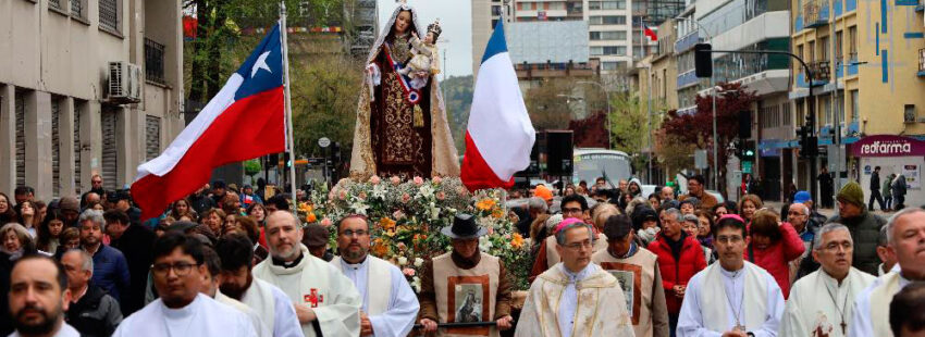 Como fue acordado en 1971 por la Conferencia Episcopal de Chile, desde entonces el último domingo de septiembre se celebra el Día de Oración por Chile y la fiesta de la Virgen del Carmen con su título de Madre y Reina de Chile. En varias ciudades del país se realizaron procesiones que este año han tenido un notorio aumento de participantes.