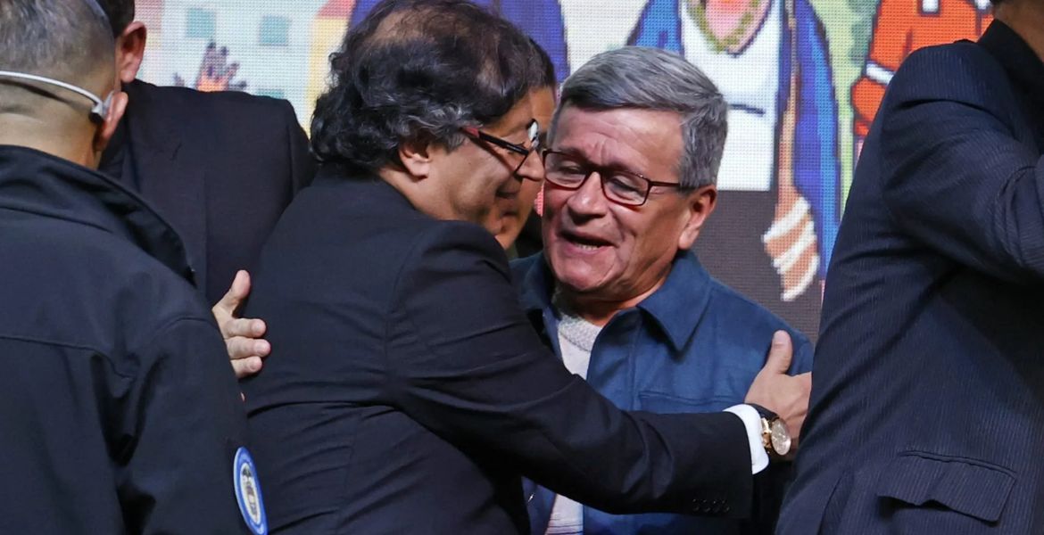 El presidente de Colombia, Gustavo Petro y Pablo Beltrán, jefe de la delegación de la guerrilla del Ejército de Liberación Nacional (ELN) / Foto: EFE