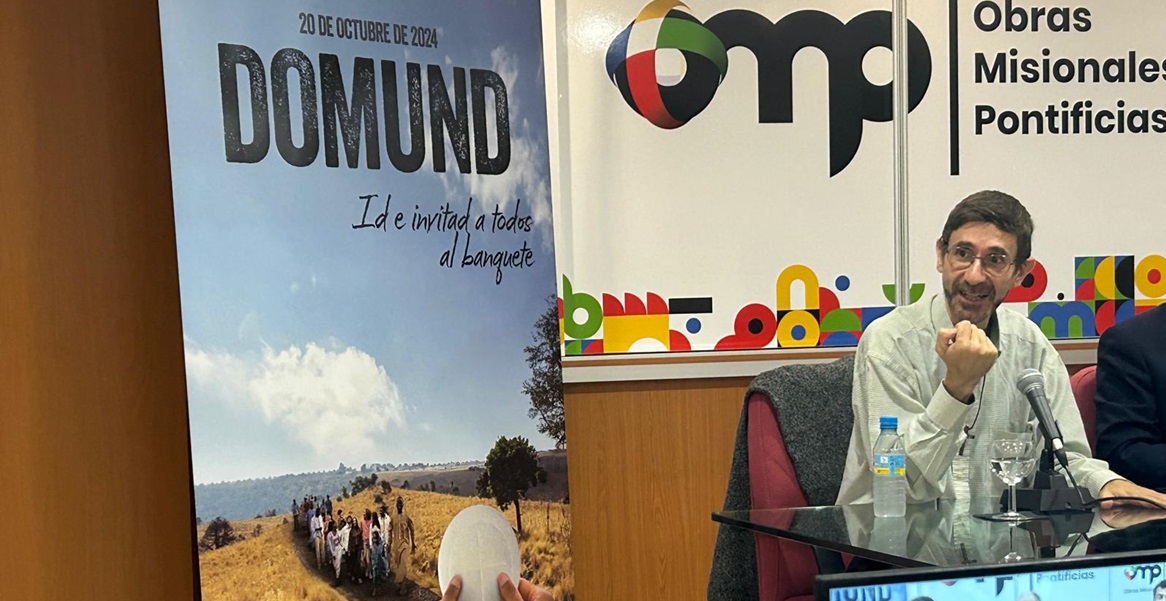 Junto a Calderón, intervinieron en la convocatoria de medios el misionero comboniano Jorge Naranjo, y Gonzalo Echanove, joven de Hakuna con experiencia misionera en Corea del Sur. ‘Id e invitad a todos al banquete’ que Jesús pronuncia como llamada a evangelizar sin exclusión alguna es el lema que el papa Francisco escoge como lema del Domund 2024. “Todo cristiano está llamado a participar en esta misión universal con su propio testimonio evangélico en todos los ambientes”, expone el pontífice argentino en el mensaje para esta Jornada Mundial en la que alerta del riesgo de que la Iglesia se acomode, se encierre en sí misma y no sea capaz de poner un pie en la calle.