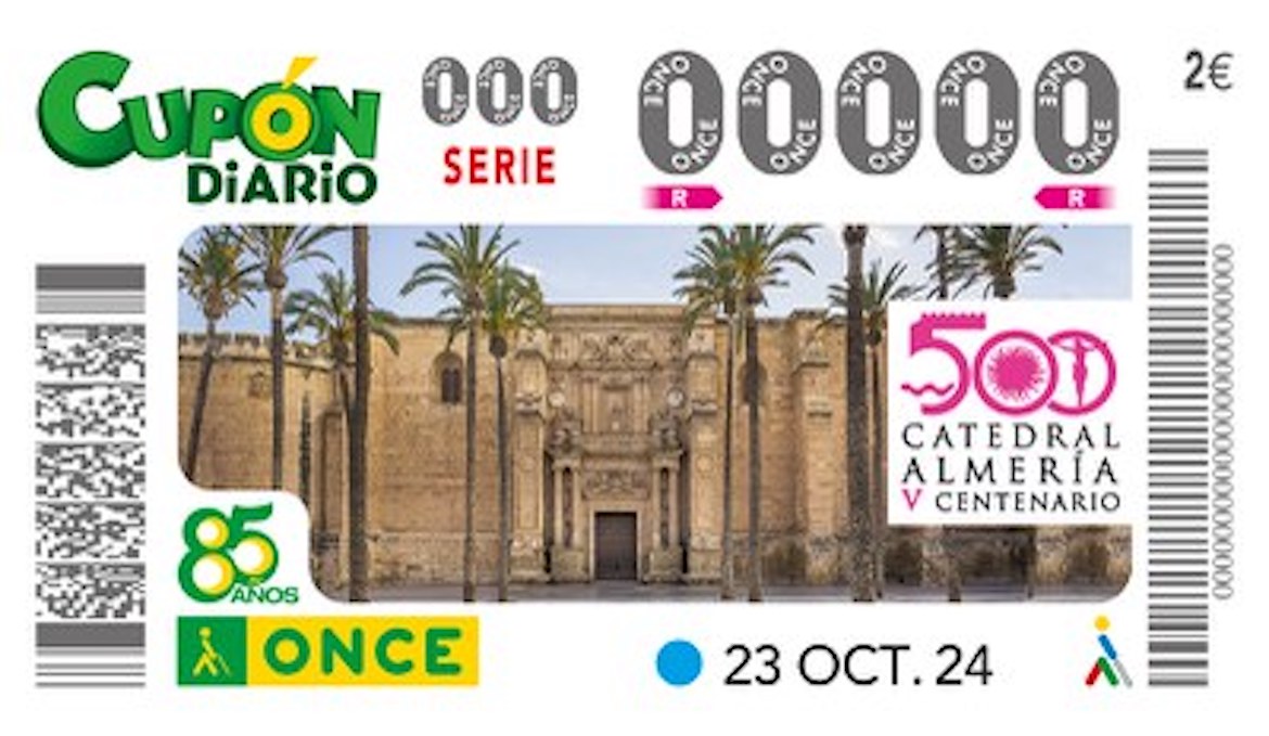 El próximo miércoles, 23 de septiembre, el cupón de la ONCE será muy especial, ya que la organización celebrará con él el V Centenario de la Catedral de Almería.