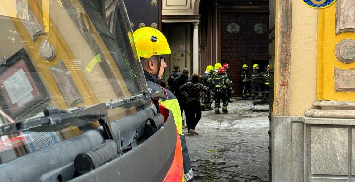 Seis unidades de Bomberos y una ambulancia, así como diferentes dispositivos de la Policía Local y de la Policía Nacional se trasladaron a la iglesia de san Antonio Abad en Sevilla este 26 de octubre. Una humareda intensa en el atrio de la sede de la Hermandad del Silencio asustó a quienes pasaban por la zona.