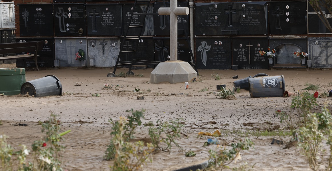 Destrozos en el cementerio de la localidad de Alfafar, en Valencia, este sábado. EFE/ Kai Försterling