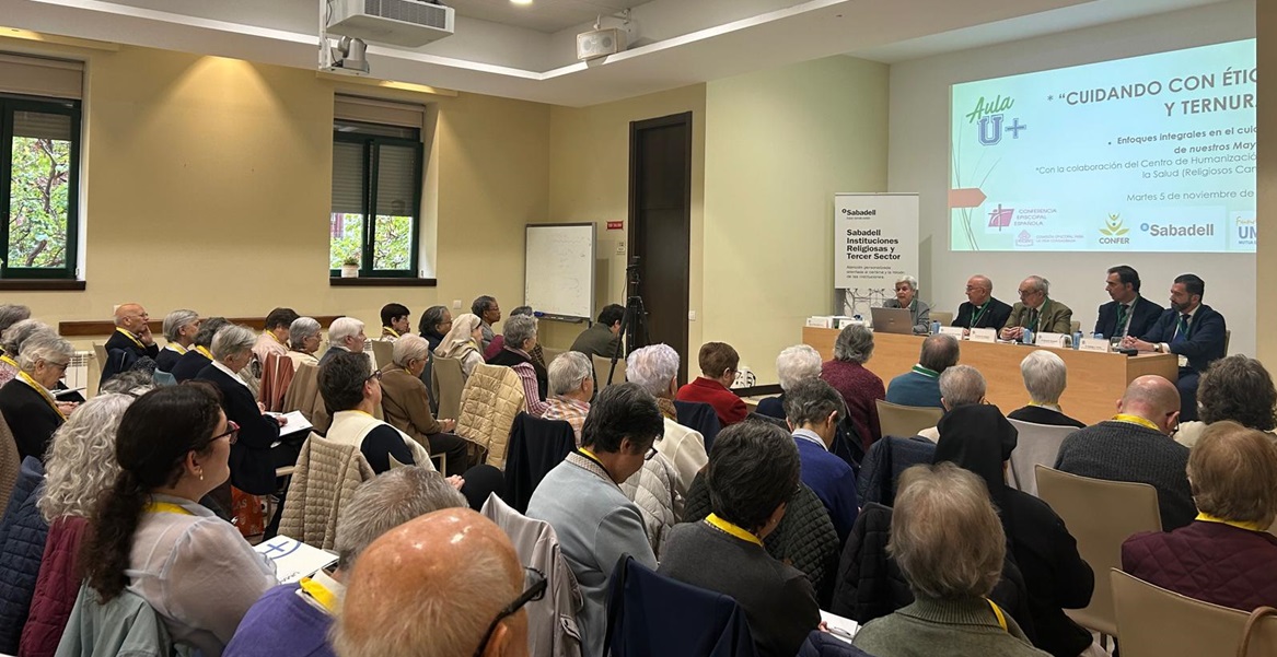 Avendaño, que es el prelado responsable de acompañar a los religiosos españoles, participó en la mesa de apertura de este foro llamado ‘Aula U+’, en el que también tomaron la palabra María José Tuñón, directora del Secretariado de la Comisión Episcopal para la Vida Consagrada, y el secretario general de CONFER, Jesús Miguel Zamora. Junto a ellos, Eduardo Basagoiti, director general de UMAS y Santiago Portas, director de Instituciones Religiosas y Tercer Sector de Banco Sabadell. Entre los ponentes más destacados de la jornada, José Carlos Bermejo y Rosa Ruiz, del Centro de Humanización de la Salud de los Religiosos Camilos. En el acto se rezó y se guardó un minuto de silencio por las víctimas de la DANA.