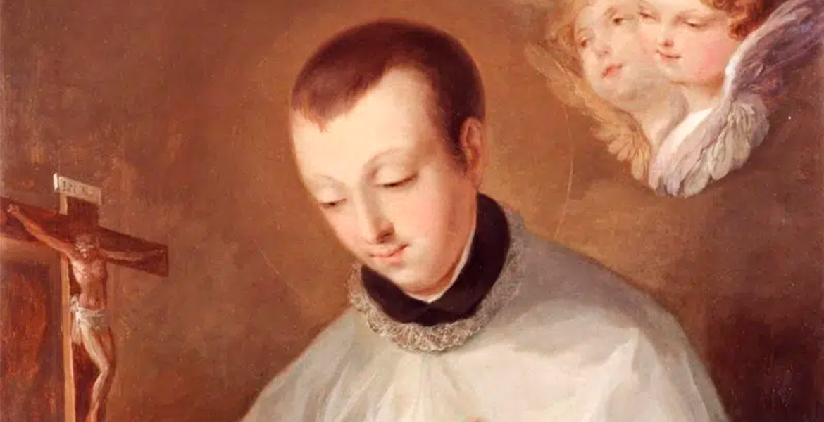 San Luis Gonzaga fue un santo del siglo XVI cuya fiesta se celebra el 21 de junio, siendo una figura de referente de para la juventud cristiana. De familia nobiliaria vivirá fundamentalmente en Florencia Mantua o Roma. Tras sus estudios universitarios entró en la Compañía de Jesús renunciando a sus derechos de sucesión como primogénito. Falleció a los 23 años en Roma tras desvivirse atendiendo a los enfermos de la peste. Suele representarse con un lirio –símbolo de la pureza–, una cruz, una calavera y un rosario. Entre los jesuitas ha habido voces que han pedido actualizar la imagen ‘noña’ transmitida de este santo.