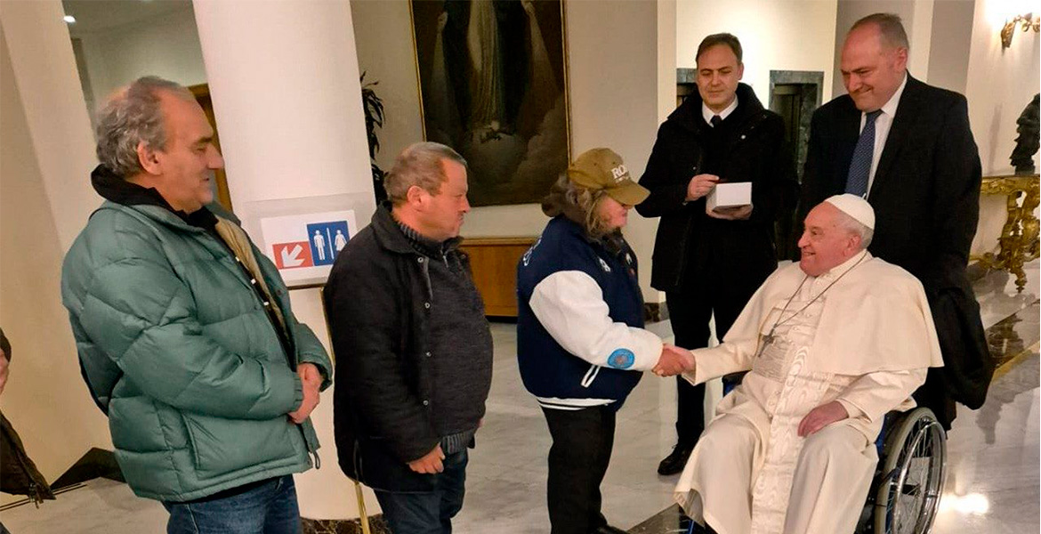 Francisco salió a las 8:00 h de la mañana de Roma tras encomendar su viaje a la Virgen en la basílica de Santa María la Mayor en el día previo. El Papa, antes del viaje, acompañado del cardenal limosnero Konrad Krajewski, saludó a un grupo de unas diez personas sintecho que suelen pasar la noche en torno a la Columnata de San pedo en el Vaticano. En pontífice ha viajado a bordo de un avión A320 Neo de la compañía ITA Airways y ha utilizado un elevador para la entrada y salida del avión. “Es un vuelo muy breve en el que no podemos hacer el coloquio habitual”, señaló el Papa durante el vuelo a los periodistas presentes a quienes agradeció su labor.
