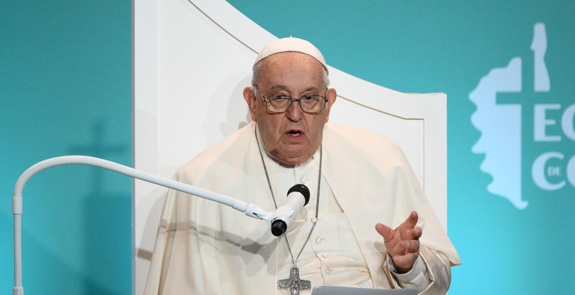 Ajaccio (France), 15/12/2024.- Pope Francis attends a conference on 'Popular Religiosity in the Mediterranean' at Convention and Exhibition Center in Ajaccio, Corsica island, France, 15 December 2024. During his first papal visit to Corsica, Pope Francis will attend the conference, meet with the clergy and religious of the island, and preside over Holy Mass. (Papa, Francia) EFE/EPA/ETTORE FERRARI