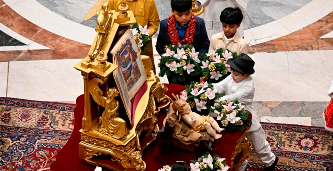 Simplificando el anuncio del jubileo, la eucaristía ha seguido tras el rito de la Puerta con el canto de la Kalenda y el Gloria. En la homilía tras el evangelio, Francisco clamó que “Dios se hizo uno de nosotros para hacernos como Él, descendió entre nosotros para elevarnos y llevarnos al abrazo del Padre”. Para el Papa, “esta es nuestra esperanza” que “el infinitamente grande se hizo pequeño; la luz divina brilló entre las tinieblas del mundo; en la pequeñez de un Niño, la gloria del cielo se asomó a la tierra. Y si Dios viene, aun cuando nuestro corazón se asemeja a un pobre pesebre, entonces podemos decir: la esperanza no ha muerto, la esperanza está viva, la esperanza no defrauda y envuelve nuestra vida para siempre”.