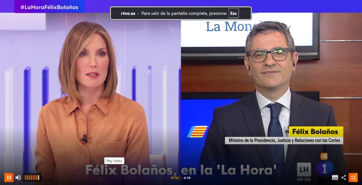 Entrevista en TVE con Félix Bolaños (fuente: TVE)