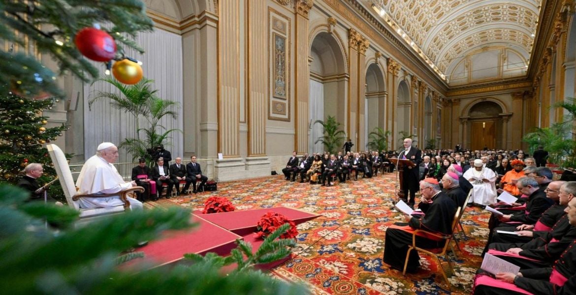 Debido al resfriado que arrastra el Papa, el oficial de la Secretaría de Estado, Filippo Ciampanelli, leyó el tradicional saludo por el inicio del año En su alocución, el pontífice hizo un friso de la situación internacional, alertando de un mundo que “se encuentra azotado por numerosos conflictos, pequeños y grandes, más o menos conocidos, y también por la persistencia de execrables actos de terror, como los ocurridos en Magdeburgo o Nueva Orleans“, así como los atentados al presidente de Eslovaquia y al presidente electo de Estados Unidos. Recordó los conflictos de Ucrania, Gaza, Sudán, Mozambique, la República Democrática del Congo, el cuerno de África y Myanmar. También, en Haití, Venezuela, Bolivia, Colombia y Nicaragua. El papa espetó que no existe verdadera paz si no viene acompañada de libertad religiosa. Reclamó el cese de las persecuciones a cristianos, de las manifestaciones antisemitas.