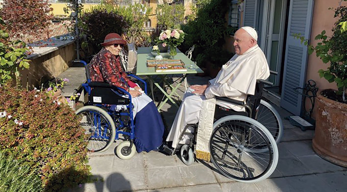 Hay que ver bien la foto que publicamos en esta página. En ella encontramos a una líder de tendencia radical, una mujer curtida en mil batallas como la del divorcio, del aborto, de los derechos de las minorías o de la libertad sexual. Y en esta fotografía también encontramos al Pontífice, el jefe de una Iglesia que se ha opuesto a muchas de esas batallas. Y que, muchas veces, ha basado su existencia en principios y batallas contrapuestas. Ambos están sentados en sendas sillas de ruedas. Él ha ido a verla con una caja de bombones y un ramo de rosas. Hablan y sonríen en una terraza bajo el sol romano. Esta foto nos dice más sobre la Iglesia de Francisco que muchos artículos, libros, análisis y entrevistas.