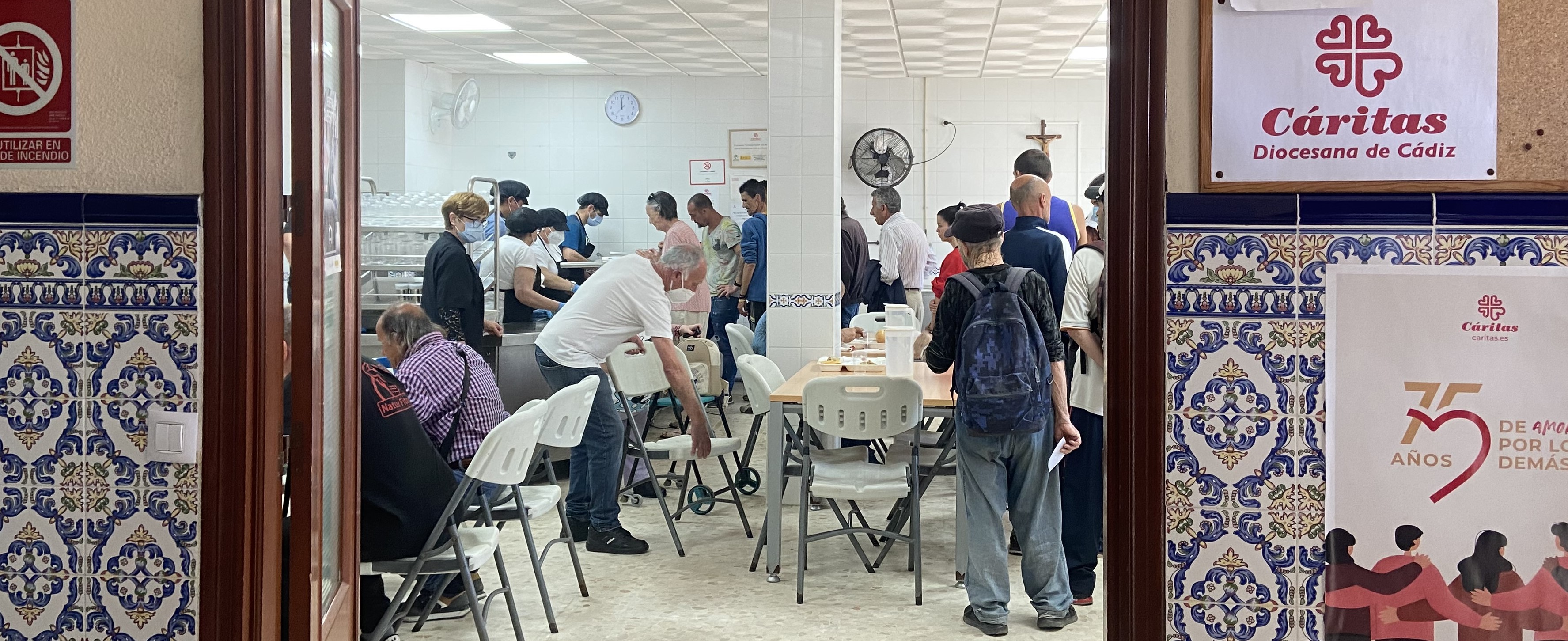 En sus instalaciones, ya renovadas, hay diversos espacios para las distintas respuestas. Pero el corazón de todo sigue siendo el comedor social. Así lo cuenta a Vida Nueva Pilar Pérez, trabajadora social que coordina el Programa de Familia y Atención Primaria en Cáritas Diocesana de Cádiz. Además de acompañar a numerosos grupos familiares a través de las Cáritas parroquiales, el día a día de este centro pasa por ella.
