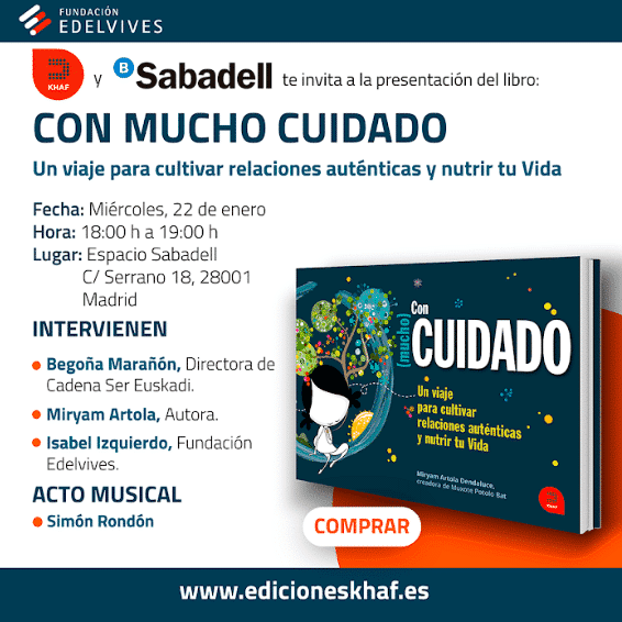 Miryam Artola Dendaluce es la fundadora y CEO de Muxote Potolo Bat, todo un universo en el cual, a través del lenguaje visual, ha tratado –desde hace más de 10 años– de generar un impacto positivo en el mundo. Compartiendo sus experiencias personales y sus dibumensajes para inspirar a vivir con más conciencia, empatía y cuidado, este 22 de enero presenta en el Espacio Sabadell de Madrid (c/ Serrano, 18, 18:00 horas) ‘Con (mucho) cuidado. Un viaje para cultivar relaciones auténticas y nutrir tu Vida’ (Fundación Edelvives): un manual perfecto para quienes buscan mejorar su Bien Ser y Bien Estar y tener un impacto positivo en el entorno que les rodea.