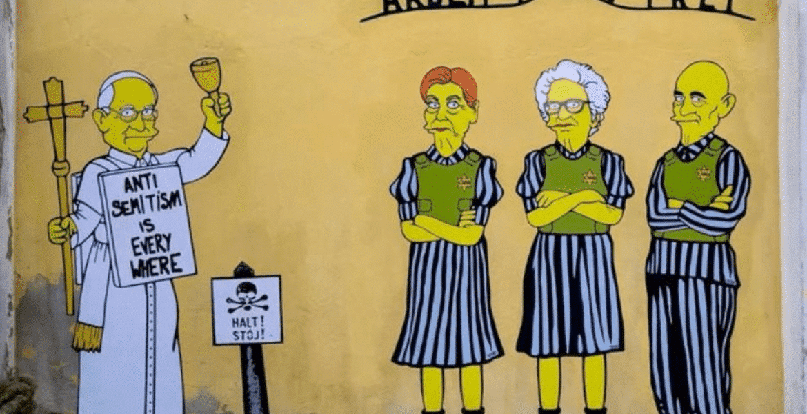 Un impactante mural en Milán conmemora el 80º aniversario de la liberación de Auschwitz-Birkenau y denuncia la persistencia del antisemitismo en la sociedad actual. La obra, titulada ‘The Simpsons – Halt! Stoj! – Anti-Semitism is everywhere’ (El antisemitismo está en todas partes), es una creación del artista aleXsandro Palombo, conocido por su estilo pop art y por utilizar la estética de estos míticos personajes en sus mensajes críticos.