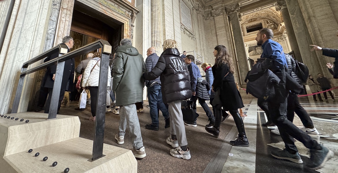 Un grupo de peregrinos entra por la Puerta Santa de la basílica de San Pedro en el Jubileo 2025