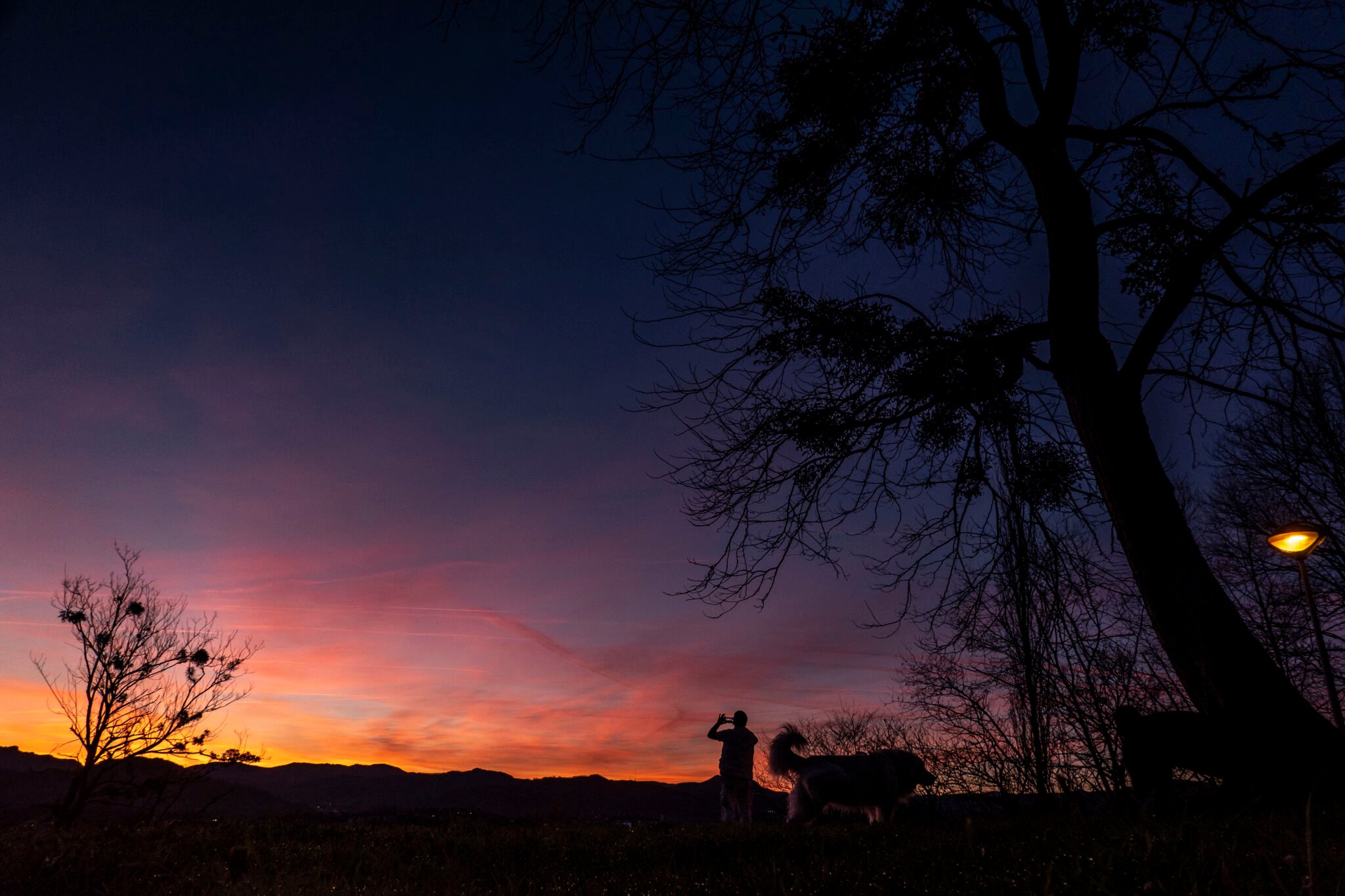 SAN SEBASTIÁN, 14/02/2024.- Un hombre fotografía el cielo este lunes al amanecer en San Sebastián. Los cielos en el País Vasco estarán hoy poco nubosos, los vientos serán flojos a moderados de componente sur, las temperaturas mínimas iniciarán un moderado ascenso y las máximas no experimentarán cambios.EFE/Javier Etxezarreta