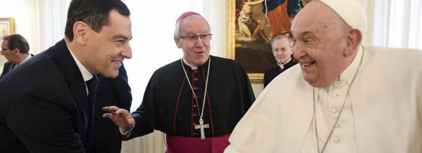 Por su parte, Juanma Moreno subrayó la importancia de esta audiencia en tanto que “Andalucía tiene mucho que decir porque es reflejo de esa pasión de ciudadanos de distintas edades y procedencias que se sienten vinculados a nuestras tradiciones y a nuestras costumbres”. El presidente andaluz ha vuelto a invitar al Papa para que visite Andalucía y ha transmitido a Francisco la labor social que desempeñan las hermandades y las cofradías.