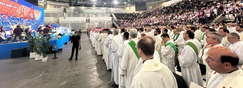 “¿Para quién soy? Para el Señor en los hermanos”, entonó el arzobispo de Valladolid al hacer referencia al lema del encuentro. “Este pueblo tiene la forma de un cuerpo, el cuerpo de Cristo”, comentó, a la vez que subrayó que “vamos juntos en la barca que se hace barcas en las Iglesias particulares”.