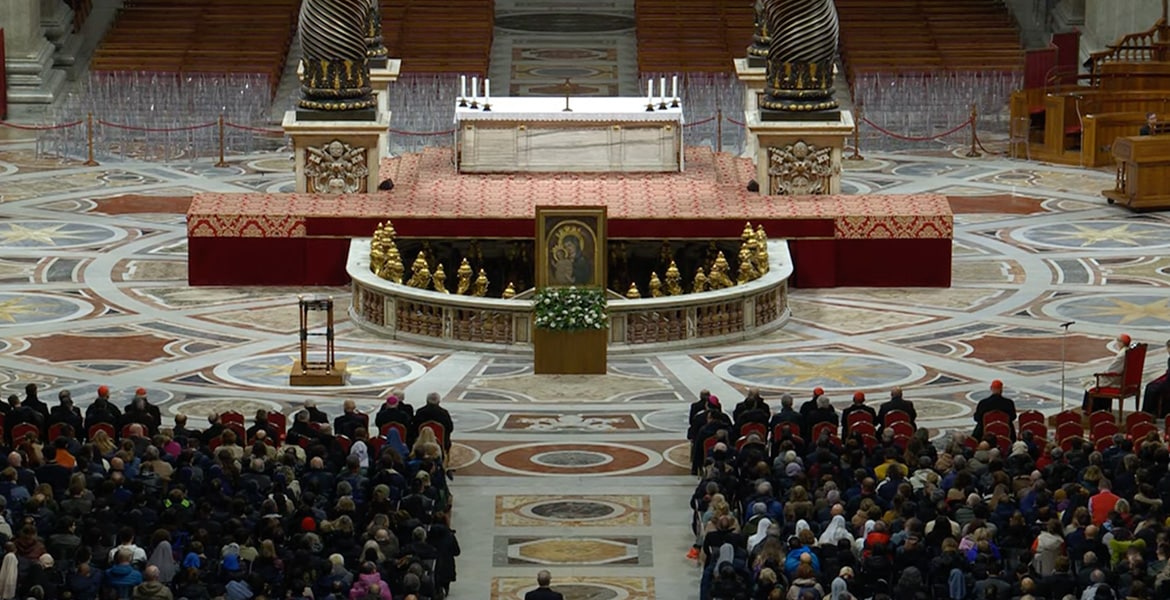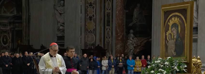 El cardenal italiano Claudio Gugerotti, prefecto del Dicasterio para las Iglesias Orientales, ha sido el encargado de presidir el rosario por la salud del papa Francisco este sábado, 1 de marzo, no en la Plaza de San Pedro sino en el interior de la Basílica vaticana ante el mal tiempo de Roma. Una oración mariana que comenzó el pasado lunes y que ha congregado a diferentes miembros de la Curia Romana y a numerosos fieles a partir de las 9 de la noche.