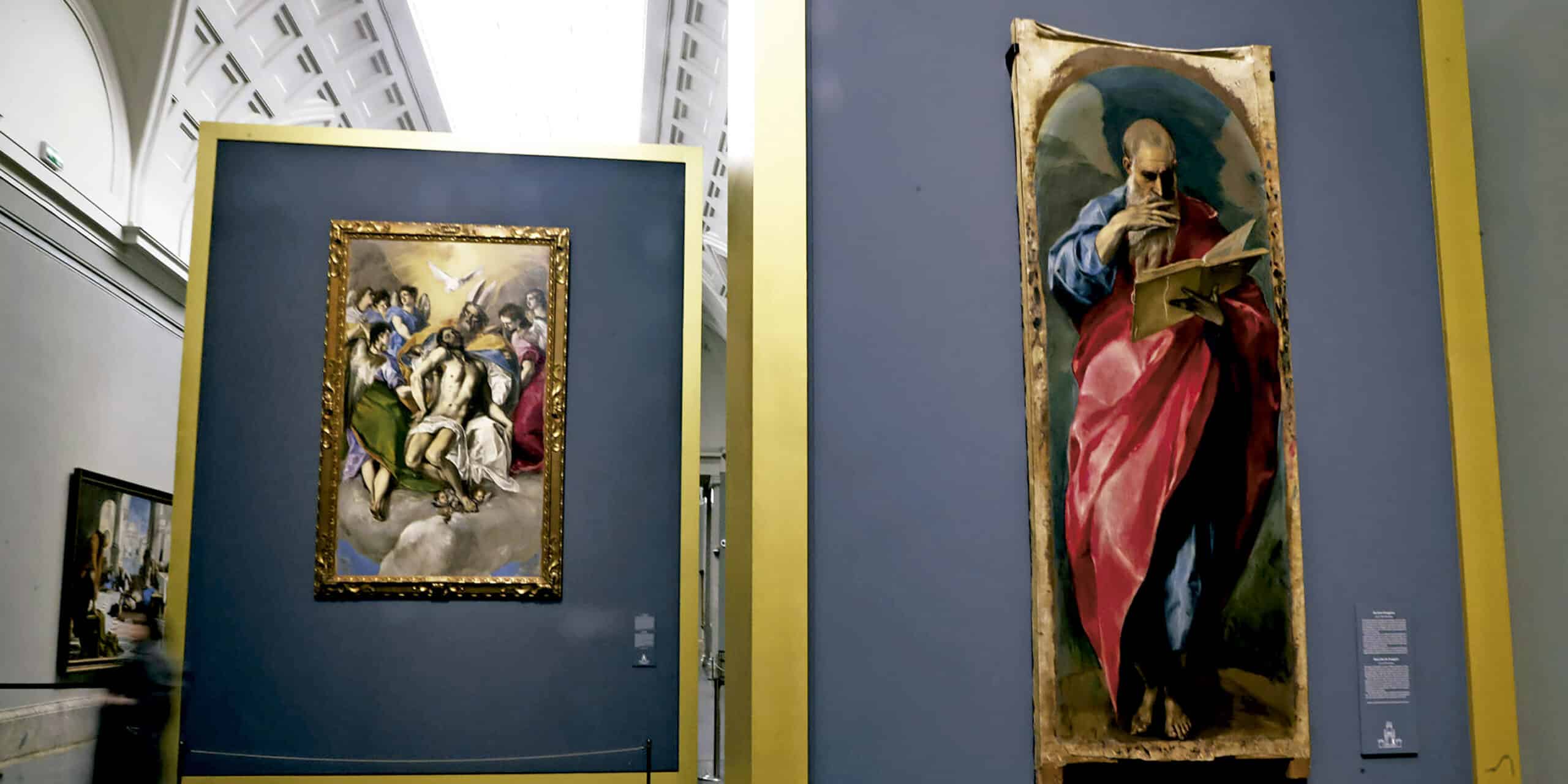 Sobre ella, ya en el ático, ‘La Trinidad’ del Museo del Prado. “Ambas escenas se conectan –añade Ruiz–. María asciende hacia esa zona celestial en la que el Padre Eterno sostiene el cuerpo de Cristo muerto”. Dios Padre aparece revestido como un sacerdote del Antiguo Testamento, cubierto con mitra bicorne, alba y manto. “Es una representación que recoge iconografías medievales y para la que el pintor se valió de una estampa de Durero de 1511, para la composición, y de obras de Miguel Ángel para el Cristo”, enumera Ruiz.