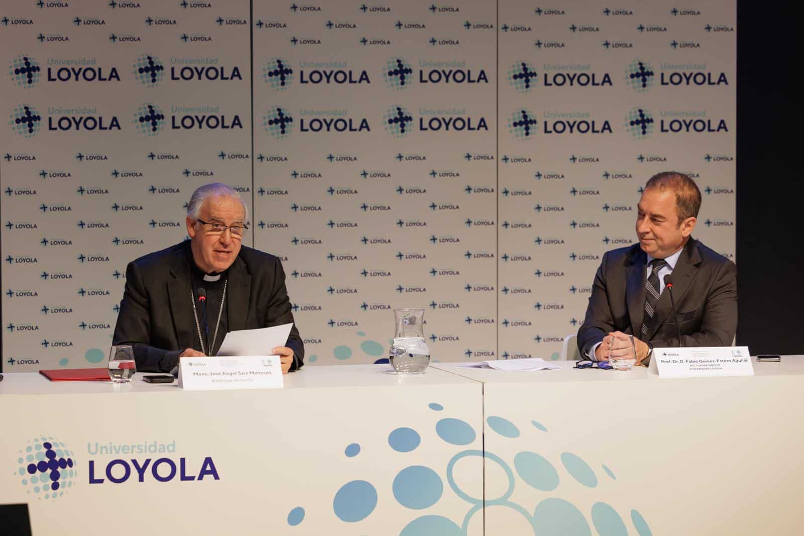 La jornada se inició con una eucaristía presidida por el arzobispo de Sevilla, José Ángel Saiz Meneses, que, a continuación, inauguró el acto académico junto a Fabio Gómez-Estern, rector de la Universidad Loyola.