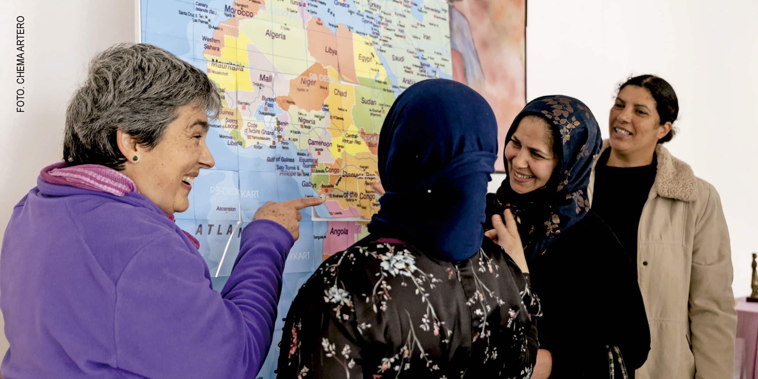 Tras muchos años trabajando en una de las mayores fronteras que existen, la de la migración, García asegura que el contacto con ellos es “una experiencia sumamente enriquecedora”, también a nivel de fe. “Es muy importante que podamos acompañar la experiencia de fe desde sus claves o desde las nuestras, y que no lo vivamos ni como dificultad, ni como rivalidad, ni con la necesidad de convertir a nadie a nada. A mí se me alegra el alma cuando nos felicitan la Navidad, o ellos mismos reconocen que Dios solo hay uno. Claro, luego están las diferentes tradiciones religiosas, pero lo importante es que la persona descubra esa experiencia de relación con el trascendente que da sentido”, subraya.