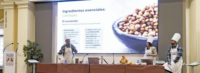 Al grito de “¡Oído cocina!”, con delantal y toque como uniforme, Cordero tomó la palabra junto a Javier Valiente (Salesianos) y Víctor Recuerda (Maristas) para presentar ‘a fuego lento’ lo que podría denominarse como ‘la receta de la comunicación interna’. O lo que es lo mismo, las claves para establecer una hoja de ruta a través de un plan de comunicación. Junto a ellos, también preparó este particular taller práctico Amalia Casado (Regnum Christi), ausente en el congreso por estar aplicando a pie de obra estas premisas en su familia carismática.