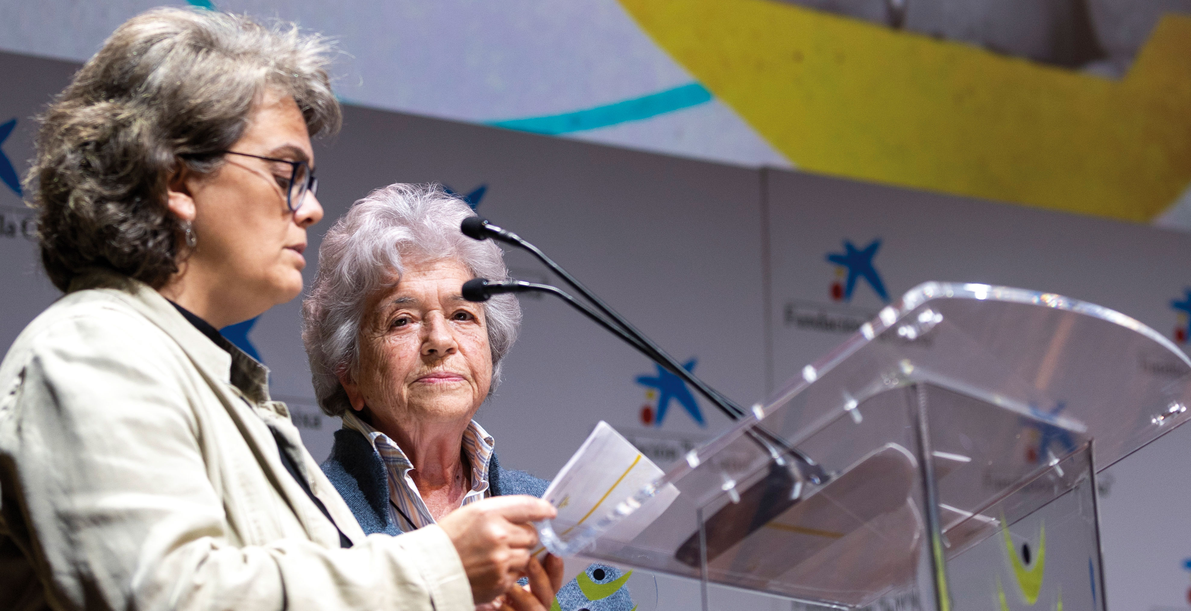Dolores Aleixandre escucha su discurso de agradecimiento, leído por Rosa Ruiz