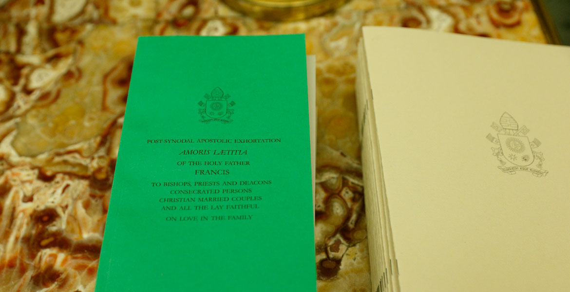Volumen encuadernado con el texto de la exhortación apostólica postsinodal ‘Amoris laetitia’ del papa Francisco