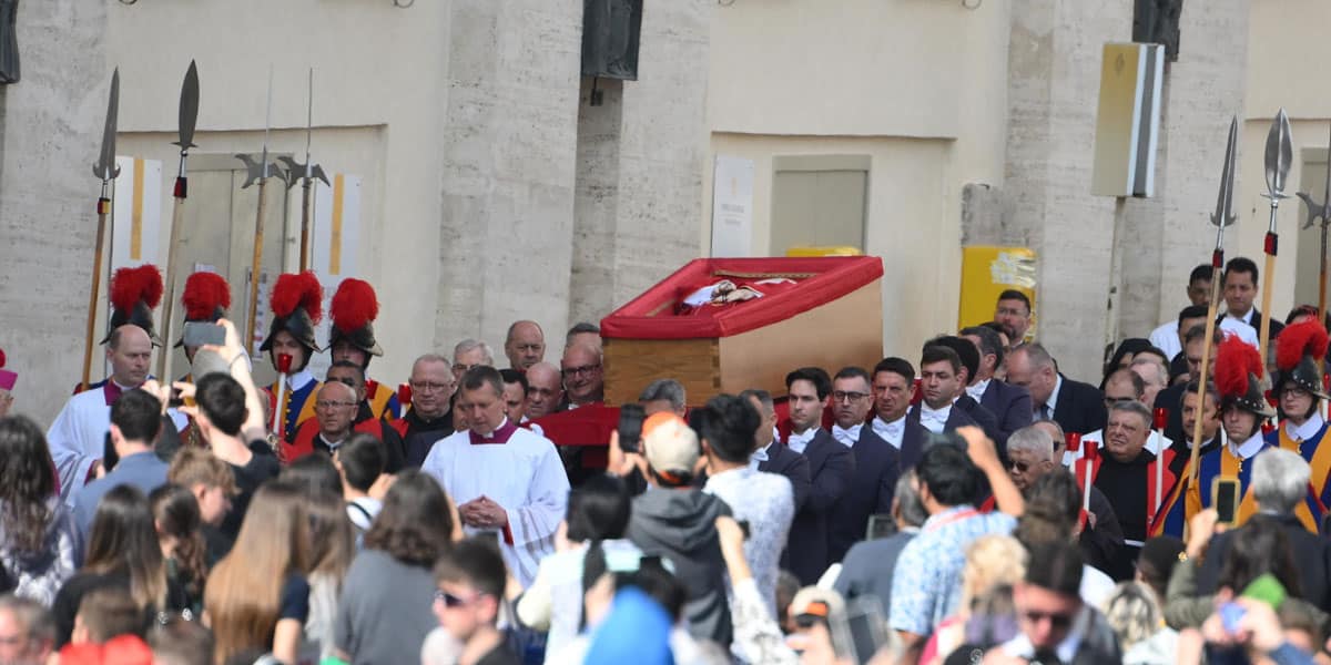 Una imponente procesión ha llevado el féretro del papa Francisco desde la Casa de Santa Marta hasta la Basílica de San Pedro. A las 09:00 horas de Roma una comitiva encabezada por decenas de cardenales han acompañado los restos del Pontífice.
