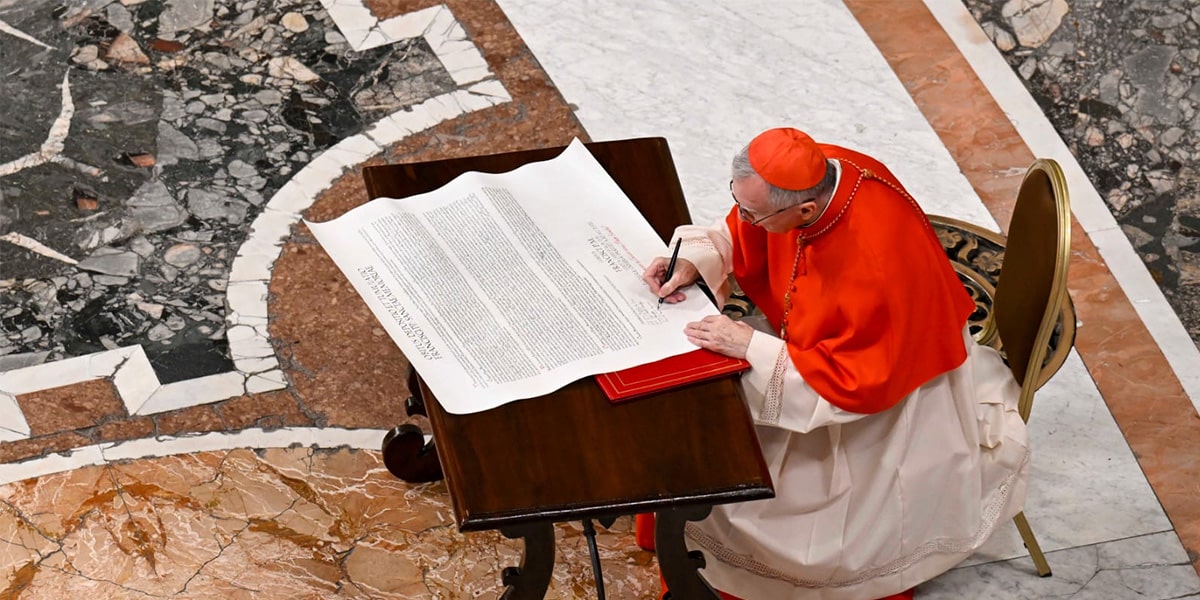 Con hábito coral, los eclesiásticos han escuchado del ceremoniero la lectura de la “Rogitio” (literalmente “oda”), un documento en el que se narra la vida del pontífice a la que todos han respondido cantando el Benedictus. En el texto, escrito en latín, se documenta la fecha de la muerte del Papa número 266 y se relata su biografía: