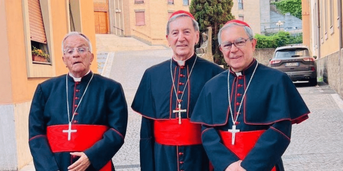 Tres cardenales colombianos: los eméritos Jorge Jiménez y Rubén Salazar, junto con el elector, Rueda. Foto: CEC