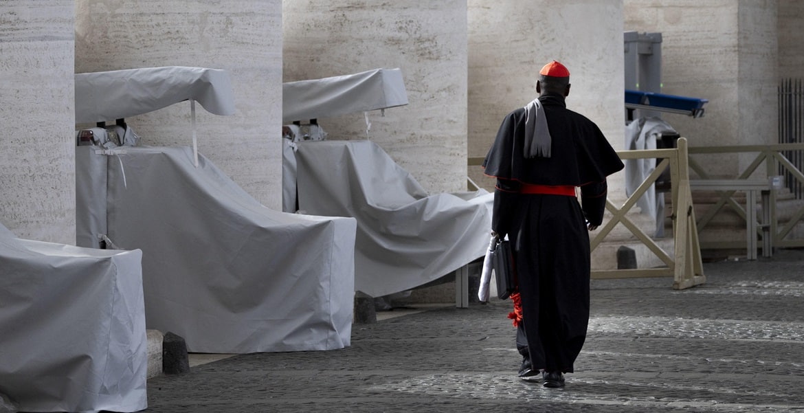 Un cardenal pasea por la columnata de Bernini en el Vaticano