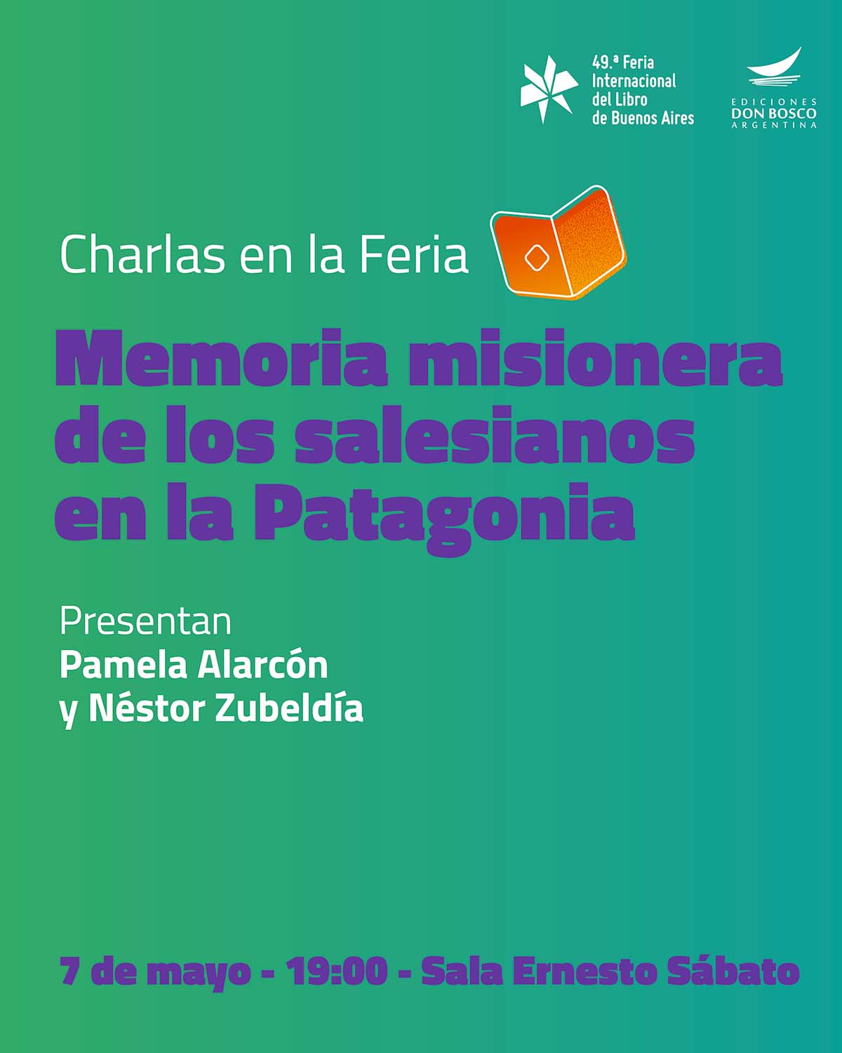 - Memoria Misionera de los Salesianos en la Patagonia (Miércoles 7 de mayo a las 19, Sala Ernesto Sábato – Pabellón Azul)