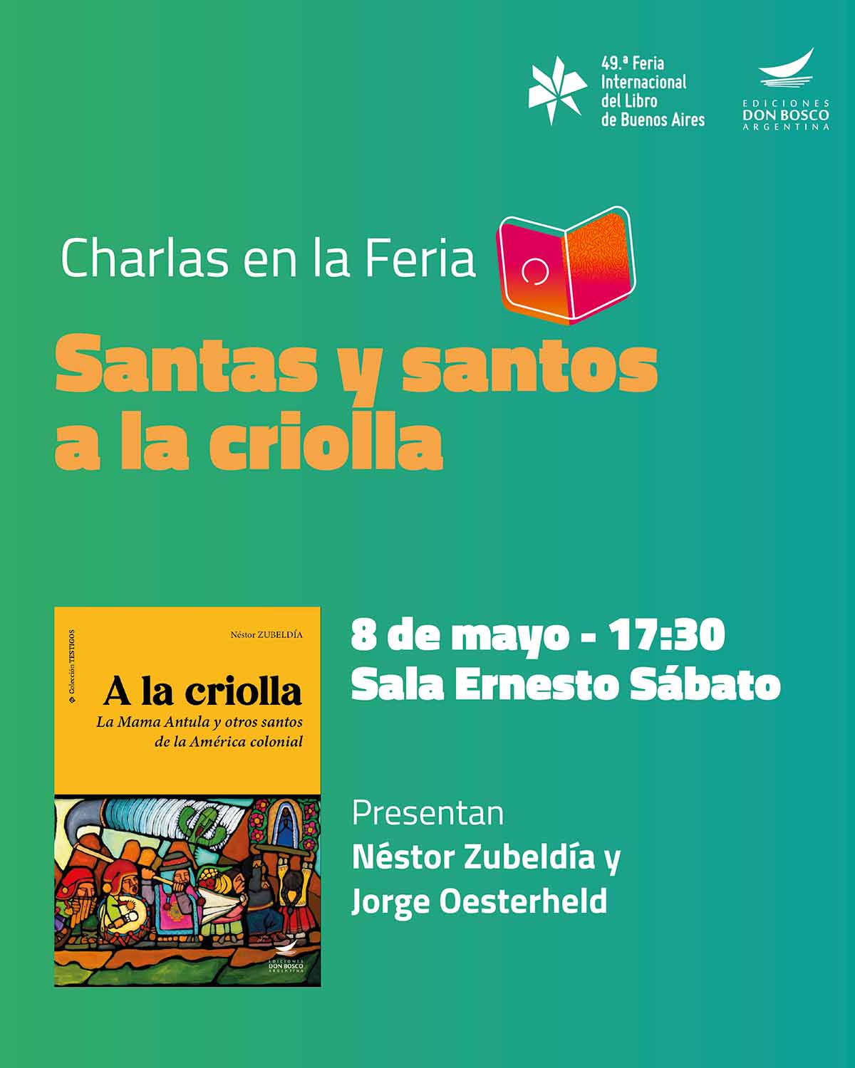 - Santas y Santos a la criolla (Jueves 8 de mayo a las 17.30 – Sala Ernesto Sábato – Pabellón Azul)