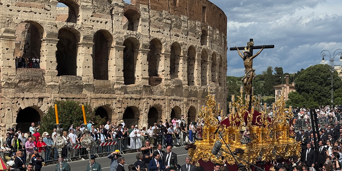Una procesión que se ha desarrollado en torno al Parque Arqueológico del Coliseo y el Circo Máximo. Para la ocasión se han reunido a unos mil cofrades de más de 100 países, especialmente de Italia, España, Estados Unidos, Francia y Brasil. En el cortejo, además del Cristo de la Expiración de Sevilla –con sus 35 costaleros, según informa EFE–, la Virgen de la Esperanza de Málaga –que ha contado con 274 portadores que han llevado el imponente trono, el mayor de Andalucía– y el Dulce Nombre de Jesús Nazareno de León; han procesionado otras imágenes de Portugal, Italia, el Vaticano y Francia. Superada la incertidumbre de la sede vacante el Jubileo finalmente ha podido celebrarse aunque en algún momento el cielo casi amenaza la suspensión de la procesión.