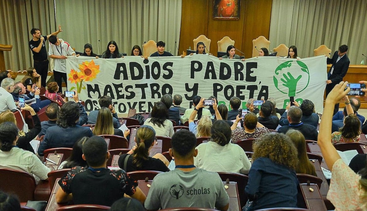 “Quiero agradecer el aliento y apoyo de la Santa Sede para llevar adelante la misión de Scholas Occurrentes a los 5 continentes. Quiero agradecerle a ustedes jóvenes de Scholas de diversas culturas, creencias y religiones, por hacer realidad en sus propias comunidades la cultura del encuentro y la construcción de la paz”, dijo Enrique Palmeyro, director mundial de Scholas. “Algunos me preguntaron, ¿ahora que murió el papa Francisco, Scholas va a seguir? Les cuento una anécdota, esta misma pregunta se la hice personalmente junto a Quique al papa Francisco. Él nos preguntó sí creíamos en Dios, le contestamos que sí medio avergonzados. Le tomó dos años discernir si esta obra procedía de Dios, y sólo entonces firmó el quirógrafo”, aseguró.