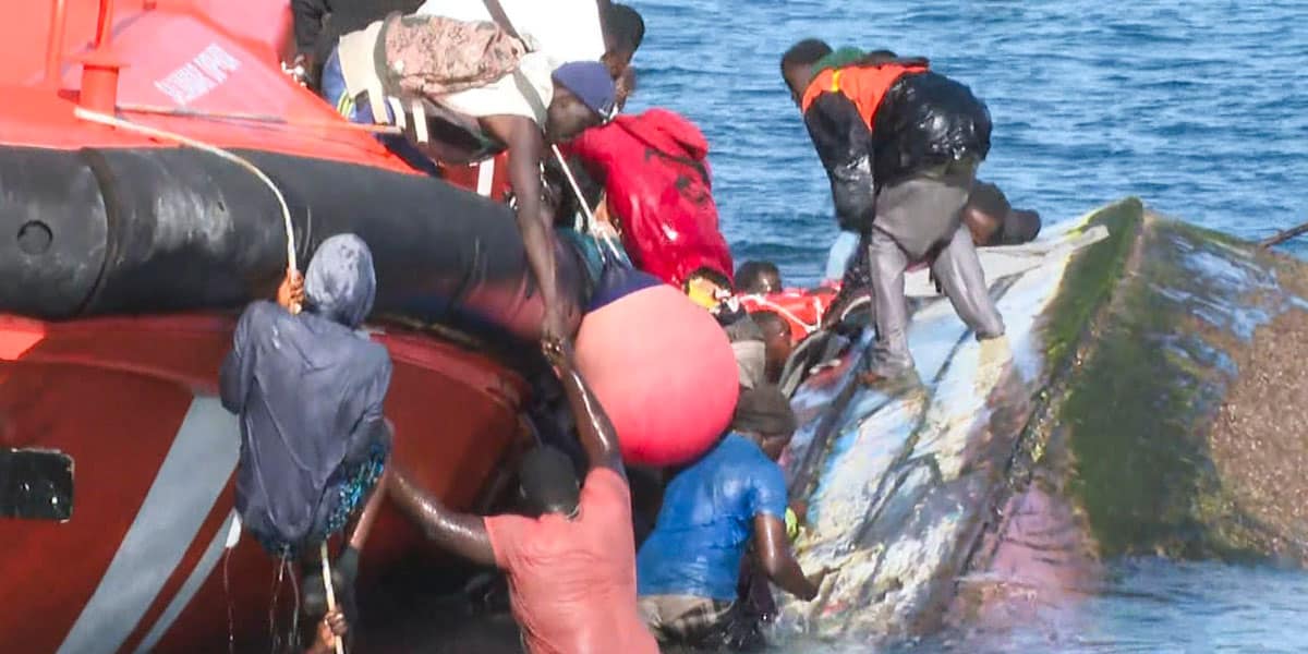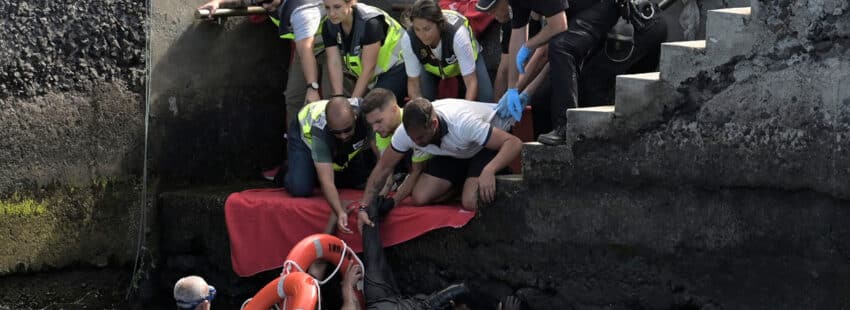 Entonces solo sobrevivieron 27 de los ocupantes de la barca, que también volcó cuando los migrantes estaban siendo trasbordados desde su embarcación a la de Salvamento. En esa ocasión, en el mar.