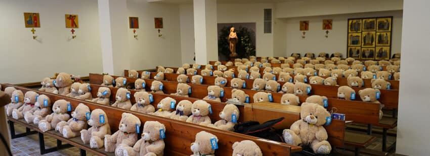 Todos estos peluches son nuevos y la mayoría han sido comprados por miembros de la comunidad parroquial. Hay diferentes modelos de ositos (el precio medio es de unos 10 euros y los monaguillos de la iglesia han sido los encargados de recaudar el dinero) de la juguetería Smyths Toys de SCS Vösendorf y cada uno estaba decorado con un pequeño lazo cosido a mano por la parroquiana Heidi Spangl. Los peluches se entregaron a los niños necesitados del proyecto de viviendas “Juno”. Esta entidad planifica y facilita viviendas asequibles para 150 familias monoparentales necesitadas en la ciudad Viena. Una forma diferente de vivir la Ascensión del Señor.
