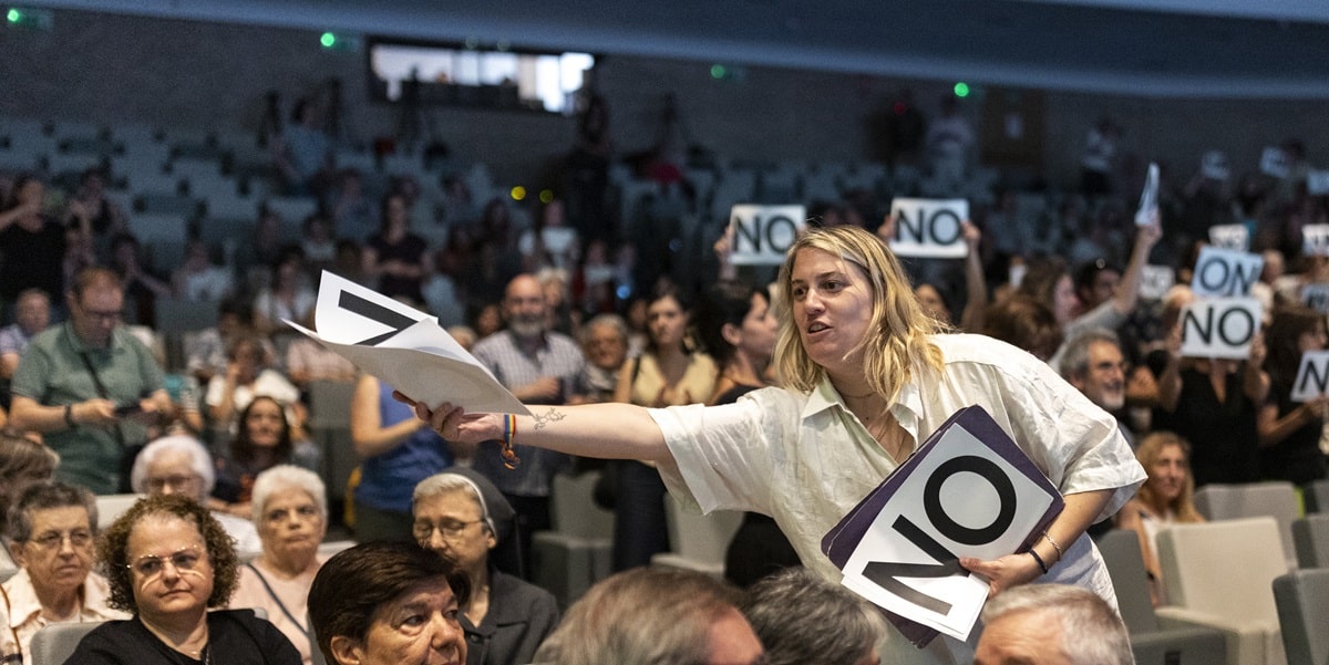 En ese momento, después de que una persona del público increpara a una de las consagradas, García del Cid levantó con un folio en el que se leía la palabra ‘NO’. Todos los objetivos y los focos de los medios presentes se dirigieron a su persona.