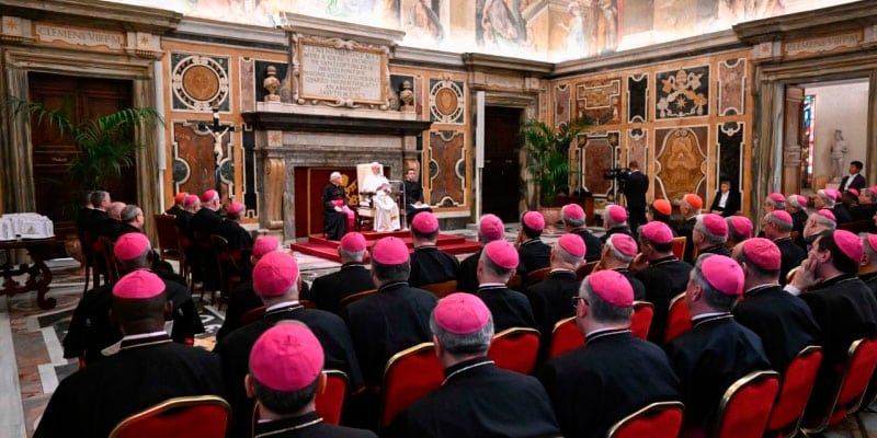 “Ningún país en el mundo tiene un cuerpo diplomático tan unido como ustedes: porque su comunión, nuestra comunión, no es solo funcional ni solo ideal, sino que estamos unidos en Cristo y en la Iglesia”, ha comenzado diciéndoles el Pontífice desde la Sala Clementina de los Palacios Apostólicos.